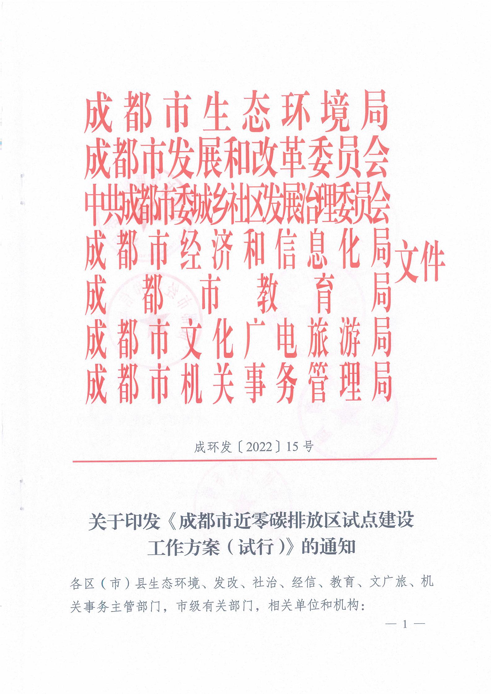 地大熱能地?zé)?多能互補(bǔ)網(wǎng)訊:為貫徹碳達(dá)峰碳中和目標(biāo)愿景,落實(shí)積極應(yīng)對氣候變化國家戰(zhàn)略,因地制宜探索近零碳發(fā)展模式,近日,成都市生態(tài)環(huán)境局會同市發(fā)改委、市委社治委、市經(jīng)信局、市教育局、市文廣旅局、市機(jī)關(guān)事務(wù)局聯(lián)合印發(fā)《成都市近零碳排放區(qū)試點(diǎn)建設(shè)工作方案(試行)》,并就2022年度試點(diǎn)建設(shè)申報工作作出安排部署。