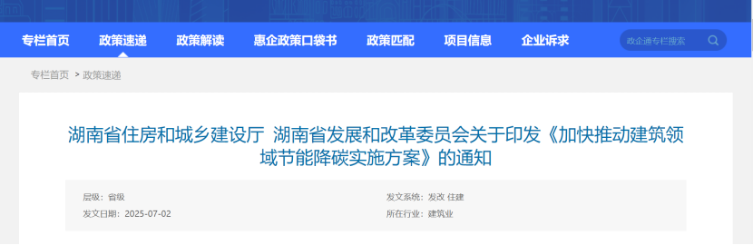湖南省住房和城鄉(xiāng)建設廳 湖南省發(fā)展和改革委員會關于印發(fā)《加快推動建筑領域節(jié)能降碳實施方案》的通知