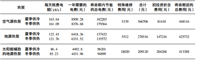調查表明,在整個壽命期之內,一般使用者都會更換一次壓縮機,按照研究的數(shù)據(jù),為了提高整個系統(tǒng)的效率,壓縮機大多在壽命期的第14年更換,使用更高效昂貴的壓縮機。地大熱能地源熱泵事業(yè)部專家認為考慮到本文研究的熱泵系統(tǒng)冷量接近,認為更換壓縮機對于費用比較不產(chǎn)生影響。