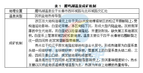 雁鳴湖溫泉位于長(zhǎng)春市西環(huán)城路與北環(huán)城路交匯處,地理坐標(biāo)為N43o56’,E125o16’。該溫泉水為淺黃色,出口溫度為40C-50℃。日流量百噸以上,富含氡、硅酸鹽、磷、溴、砷、偏硅酸、鈉、重磷酸鹽、硫酸鹽、氯化物等48種對(duì)人體有益的微量元素。