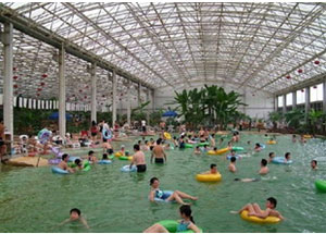 江蘇省洪澤縣老子山溫泉風(fēng)景 溫泉陽光浴場(chǎng)展示出亮麗的南國風(fēng)情,分布大型泳池和品類各異的水療、魚療、花藥浴、泥巴浴,不僅具有神奇的理療保健作用,還兼?zhèn)渑哦攫B(yǎng)顏、美白肌膚、調(diào)理身心等多重功效,享有蘇北熱海、澤國仙境、華東首席溫泉度假區(qū)之美譽(yù)。