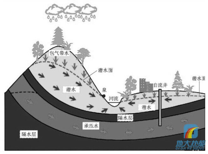 包氣帶水 是指埋藏于包氣帶中的地下水,包氣帶指巖石空隙未被地下水充滿的地帶,多為吸著水或薄膜水,而重力水較少。如果下滲水多時(shí),可出現(xiàn)較多的重力水。 運(yùn)動:主要作垂直方向上的運(yùn)動,如重力水常由上向下運(yùn)動、毛細(xì)水由下向上運(yùn)動。 主要包括:土壤水、上層滯水、沼澤水、沙漠及濱海沙丘中的水等。一般水量不太,易受污染,故不易作為工農(nóng)業(yè)供水水源,但對于植物生長具有重要意義。 潛水 地面以下第一個(gè)穩(wěn)定隔水層以上具有自由水面的地下水 承壓水 充滿兩個(gè)隔水層之間的承受靜水壓力的地下水。