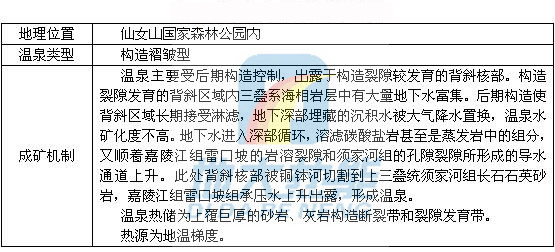 川東仙女山溫泉風景仙女山溫泉地處達州市仙女山腳的銅缽河畔、仙女山國家森林公園,距平灘場鎮(zhèn)1公里。據(jù)勘測,該溫泉水質(zhì)優(yōu)良,水溫適宜,流量大并且穩(wěn)定,富含 多種對人體有益的微量元素和礦物質(zhì)。其中硒和鍶的含量超過國家級規(guī)定的標準,對人體具有較好的保健功能。經(jīng)預測,該溫泉可達國家級溫泉標準,開發(fā)的前景廣闊,開發(fā)價值高。規(guī)劃將溫泉水引至對巖竹海中進行開發(fā),新建接待服務設施,開展游泳、沖浪、醫(yī)療保健、休閑度假等活動項目。擴建平灘經(jīng)溫泉到馬家的公路,新建景區(qū)游道,完善電力設施、通訊設施和提高電視收視效果,達到日接待能力上千人次的規(guī)模。